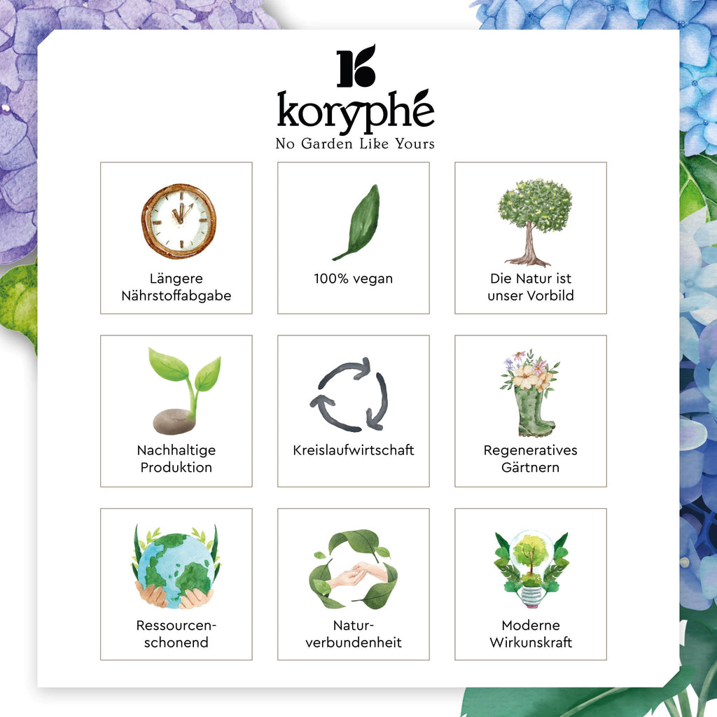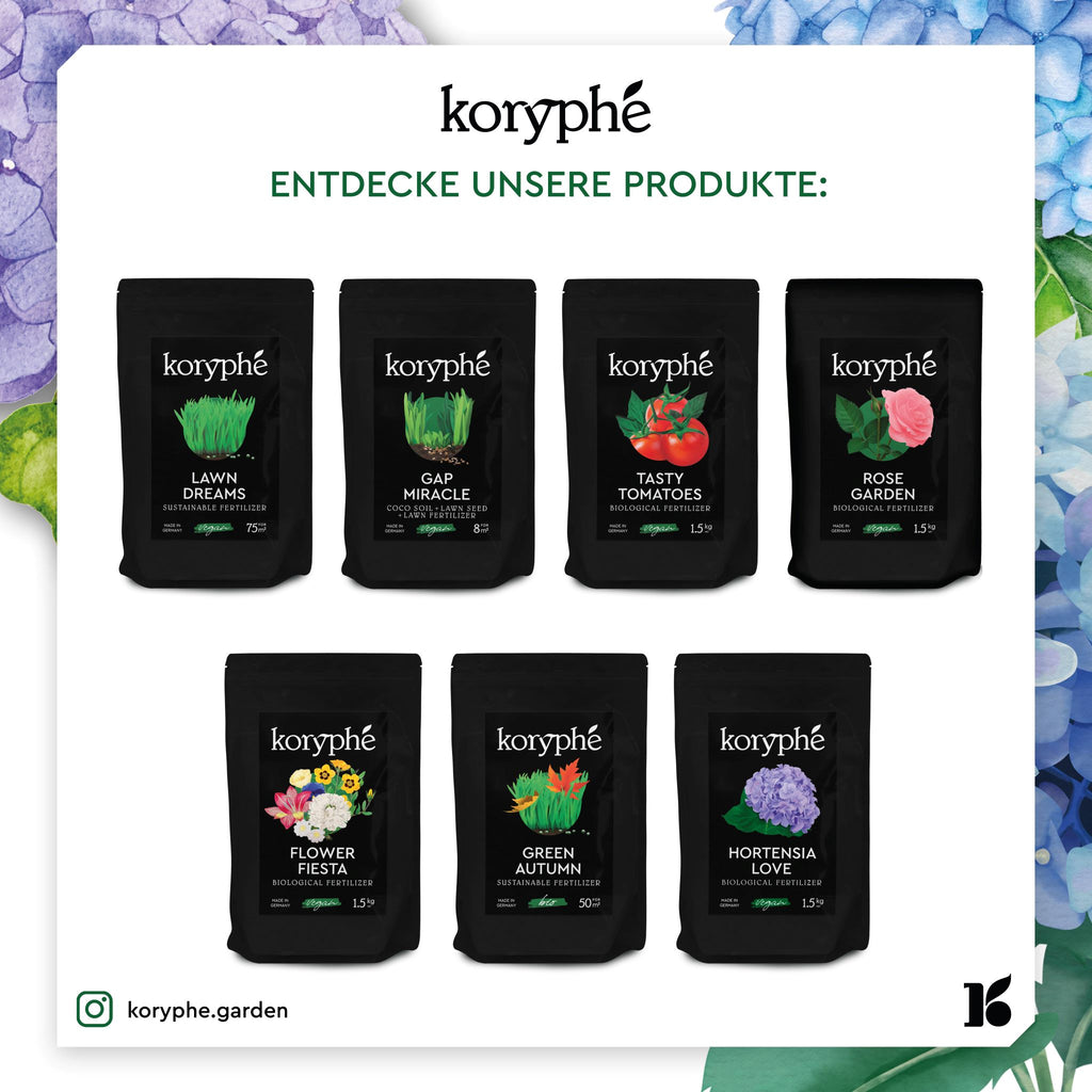 Gardening sustainabily with Koryphé takes us back to our roots. The nutrients in our products will be available to your plants long term and it's a healthy and effective alternative for those who want to garden naturally without artificial pollutants.